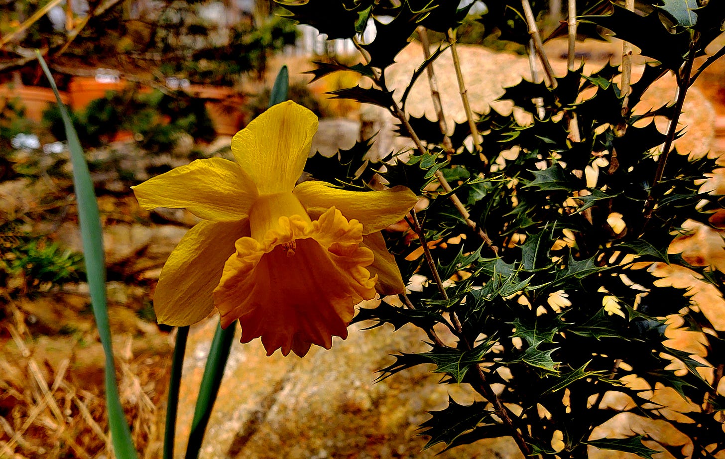 Spring is spun, her green and gold audacious bloom defies the cold and dares the frost, her colors bold rejoice the youth, revive the old. Together now among the brave buds and shoots, we rise to save the scent of joy, the flowers we crave to grace our table and the grave. Reach out and savor sight and touch for summer will fade soon enough, life will pass on, smooth or rough, and hearts will still, however tough. So, welcome gladly this bright day and join our Gardener in His play and sing Her praises while we may until, like flowers, we fade away.
