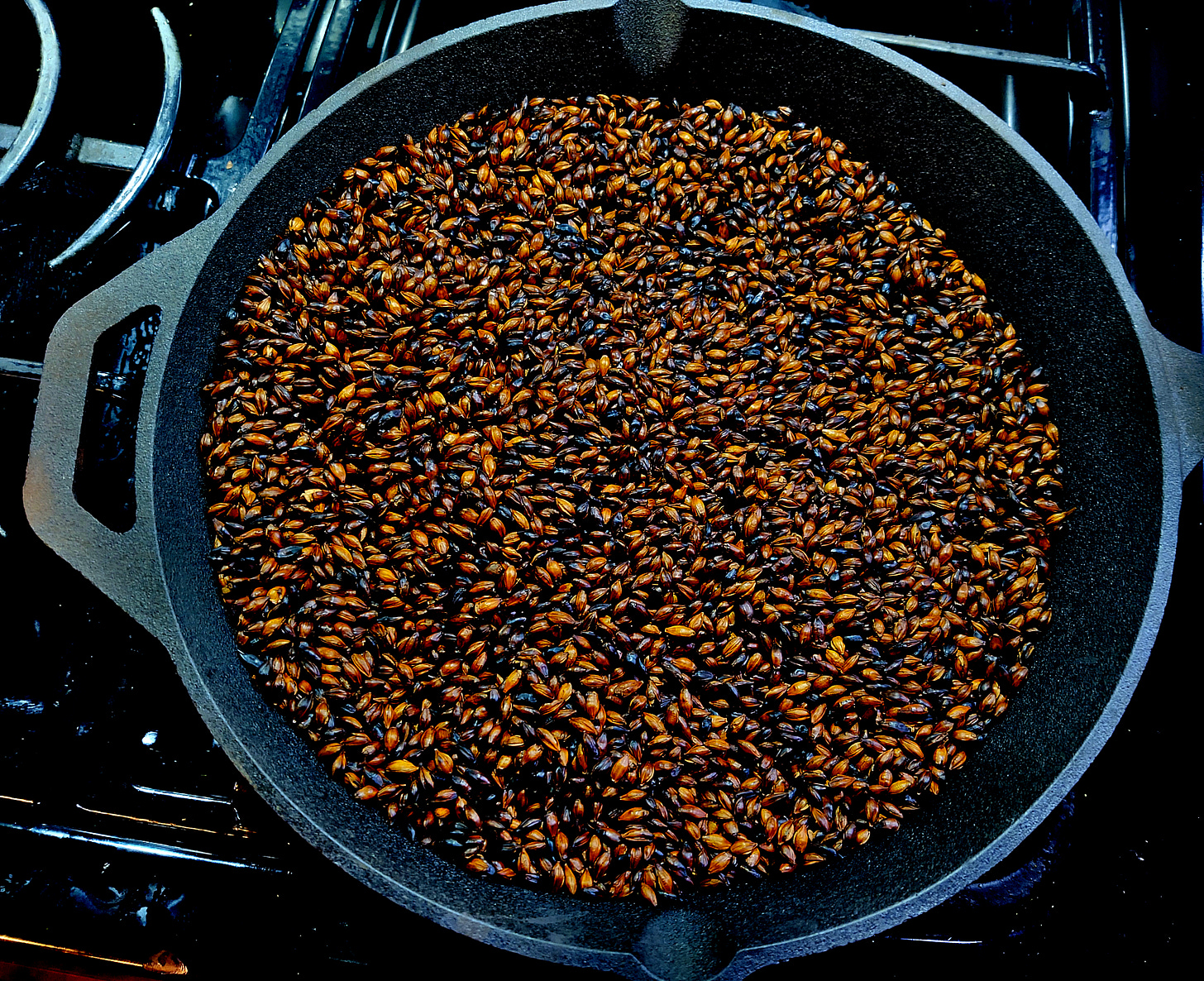 Among the winter rituals at Hemlock Cottage is toasting barley for Mugicha. Our non-GMO unhulled barley comes from Joseph’s Grainery at the other end of the country in Washington. Shipping costs a bit, but it’s worth it. Mugicha can be purchased in tea-bags already prepared for steeping, but at our house, we make our own from scratch.